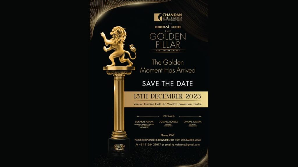 Mumbai (Maharashtra) [India], November 27: The most prestigious event in the real estate industry, the CREDAI-MCHI Golden Pillar Awards, often referred to as the “Oscars” of the real estate world, is set to return for its highly anticipated second edition. The stage is set to honor and celebrate the finest achievements in the realm of real estate, recognizing innovation, excellence, and commitment to quality.