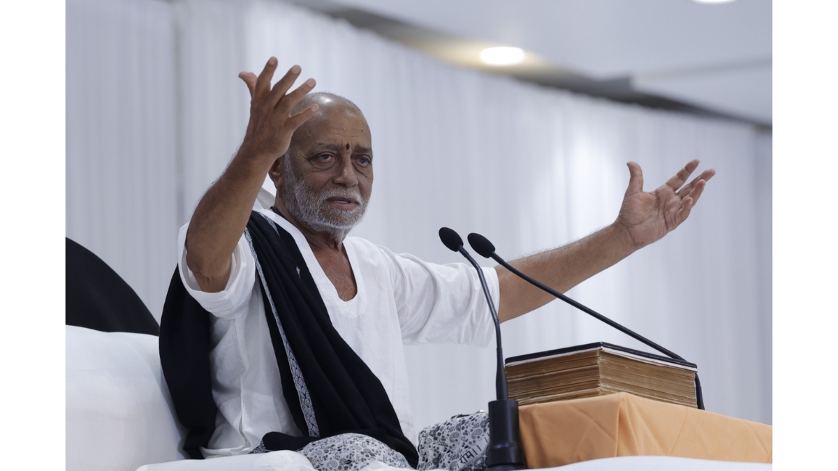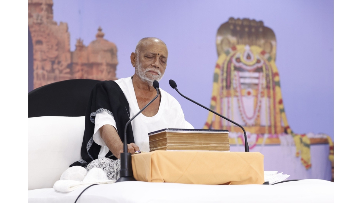 Addressing the Manas Hari Bhajan Ramkatha in Thanjavur, Tamil Nadu, on Wednesday, Morari Bapu said, “All the resources and rituals of the world involve effort. If there is rest anywhere, it is only in bhajan. Bhajan is not a ritual. I keep saying this repeatedly – bhajan is not a means to an end. Bhajan is not a path, it is the destination.”